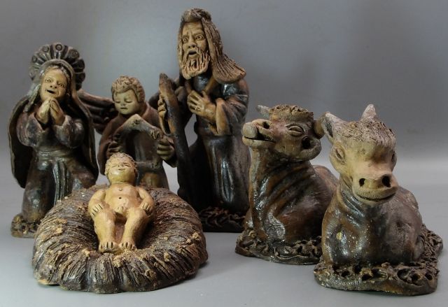 Größe hoch Josef ca. 10 cm, Maria ca. 8 cm, Engel ca. 7cm, krippe ca. 7,5 cm, Och und Esel 7,5 cm x 5,5 cm