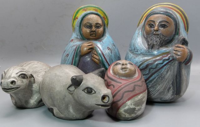 heilige Familie aus Ton handgefertigt und bemalt, herkunft Peru